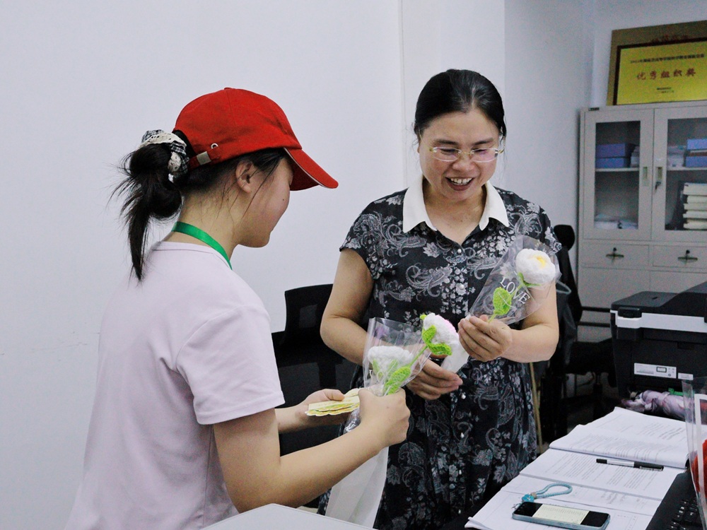 “老师,您辛苦了!”活动当天,志愿者们洋溢着灿烂的笑容,将一束织花和一封贺卡献给敬爱的老师们。一句温馨的祝福,一个温暖的拥抱,一声欣慰的感谢,洋溢着浓情暖暖着师生情。