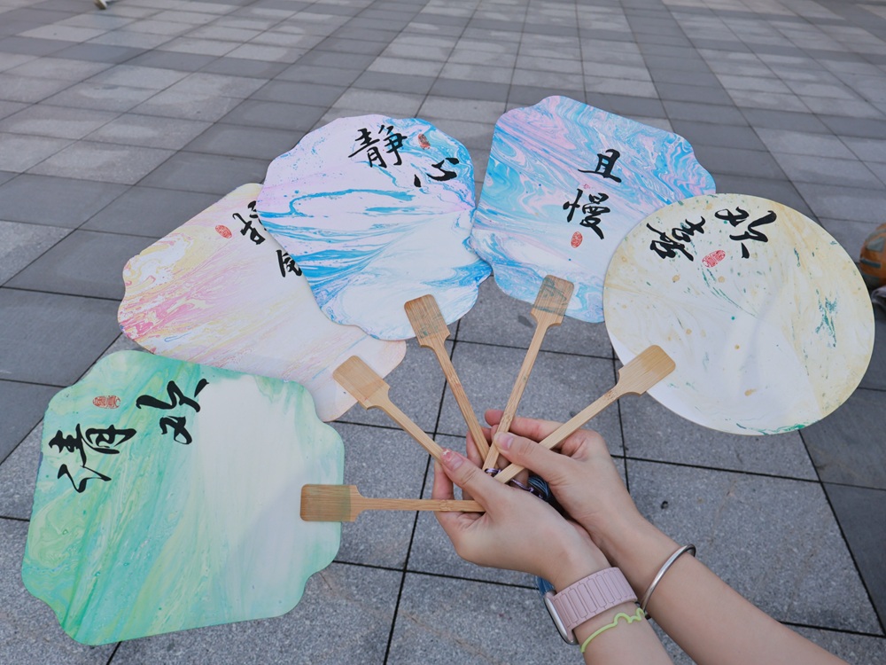 教师节里品“非遗”,漆扇制作展工艺。活动现场暖意融融,秩序井然,志愿者在老师们的引导下全情投入,将专业巧思与传统韵味融入创作。素净扇面渐次变得色彩斑斓,让这份节日祝福更添了几分厚重的文化底蕴。