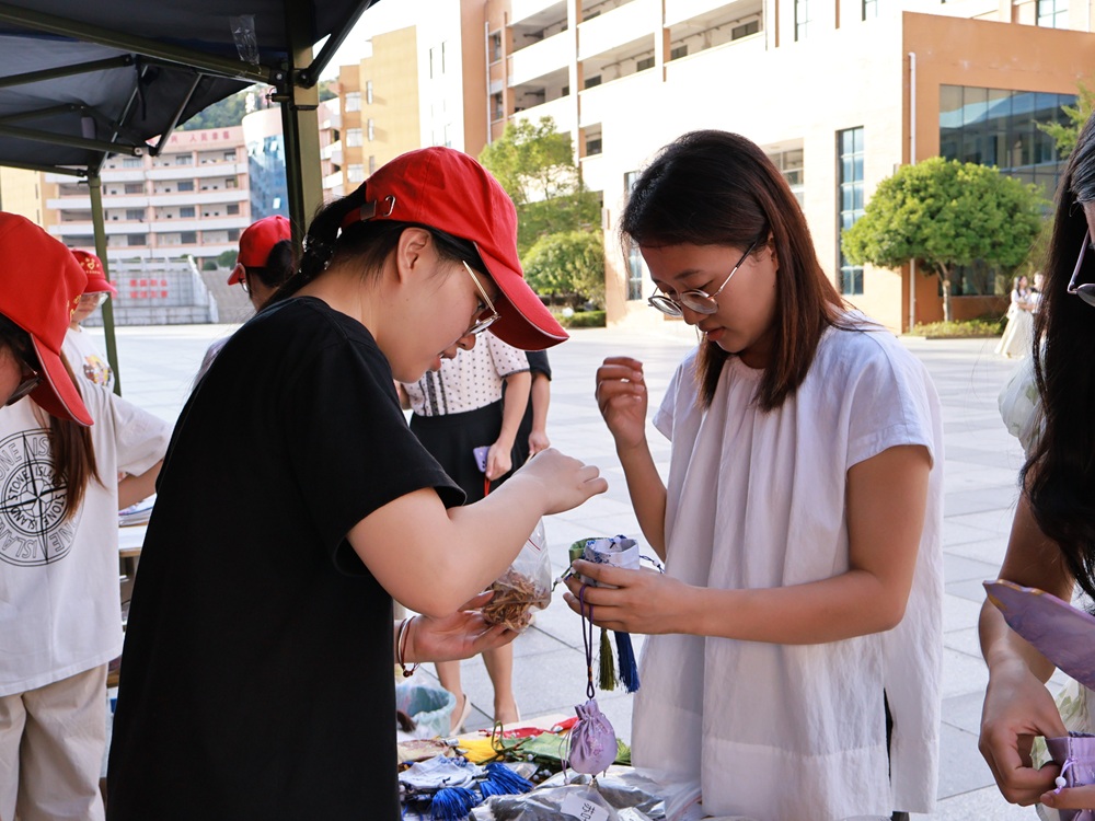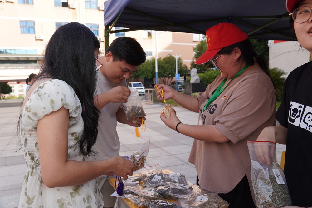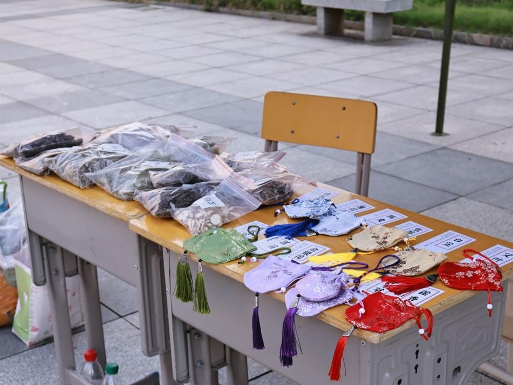这个教师节,空气里弥漫着特别的“舒心香”——那是香囊制作活动中,香料与温情碰撞出的芬芳。志愿者们细心陈列着各式香料,一边耐心讲解,一边协助老师们挑选心仪之味,再一同将馥郁馨香缓缓装入空囊。每一只饱满的香囊,都盛着对师长的敬意,也定格了师生间的温情瞬间
