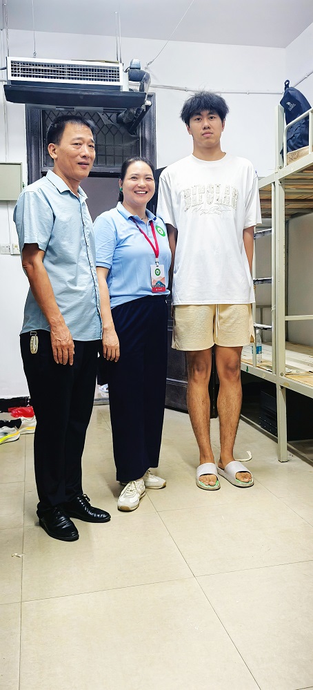 金秋送爽,丹桂飘香,又是一年开学季。9月17日,我校迎来了充满活力的2025级新生。然而,在报到现场,一位身高特别引人注目的新生却遇到了一个“甜蜜的烦恼”--他1.98米的身高,超出了学校宿舍标准1.92米床铺的长度。这一情况很快被反馈至学校相关部门。