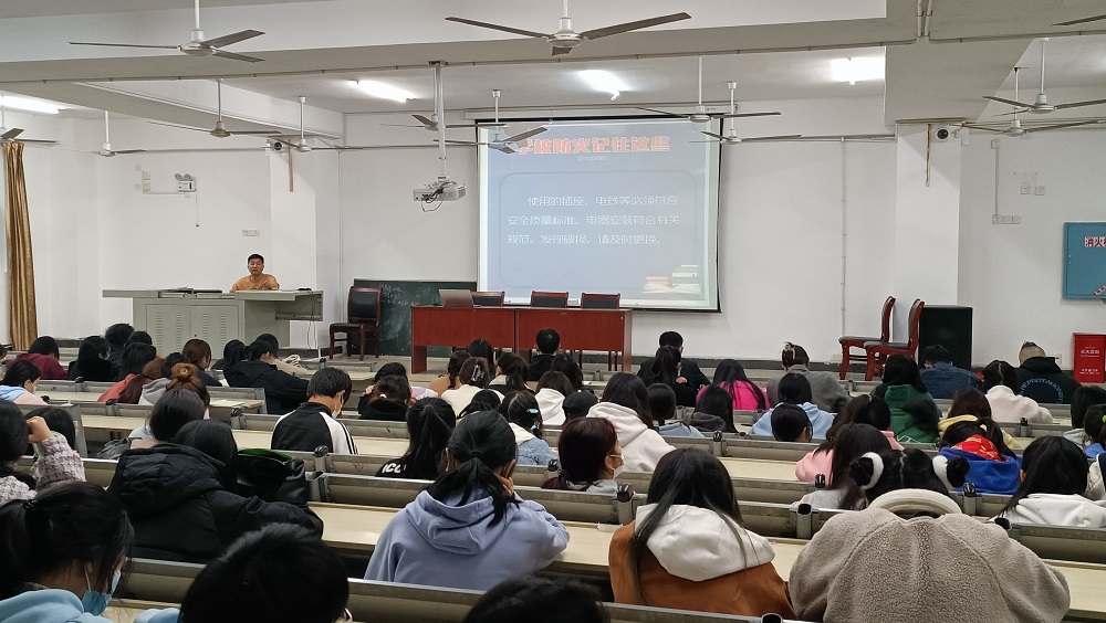 学生安全教育“不打烊”,同筑校园安全“防火墙”。冬季是校园安全事故的高发期,一组组惊心动魄的数据,一个个真实发生的案例展现在同学们眼前,谢耀华从防范火灾、安全用电等八个方面讲述校园安全突发事件及应对各类意外事故的正确处置方法。谢耀华还就校园公共安全问题、心理健康问题等与同学们交流互动,帮助同学们解疑答惑。
