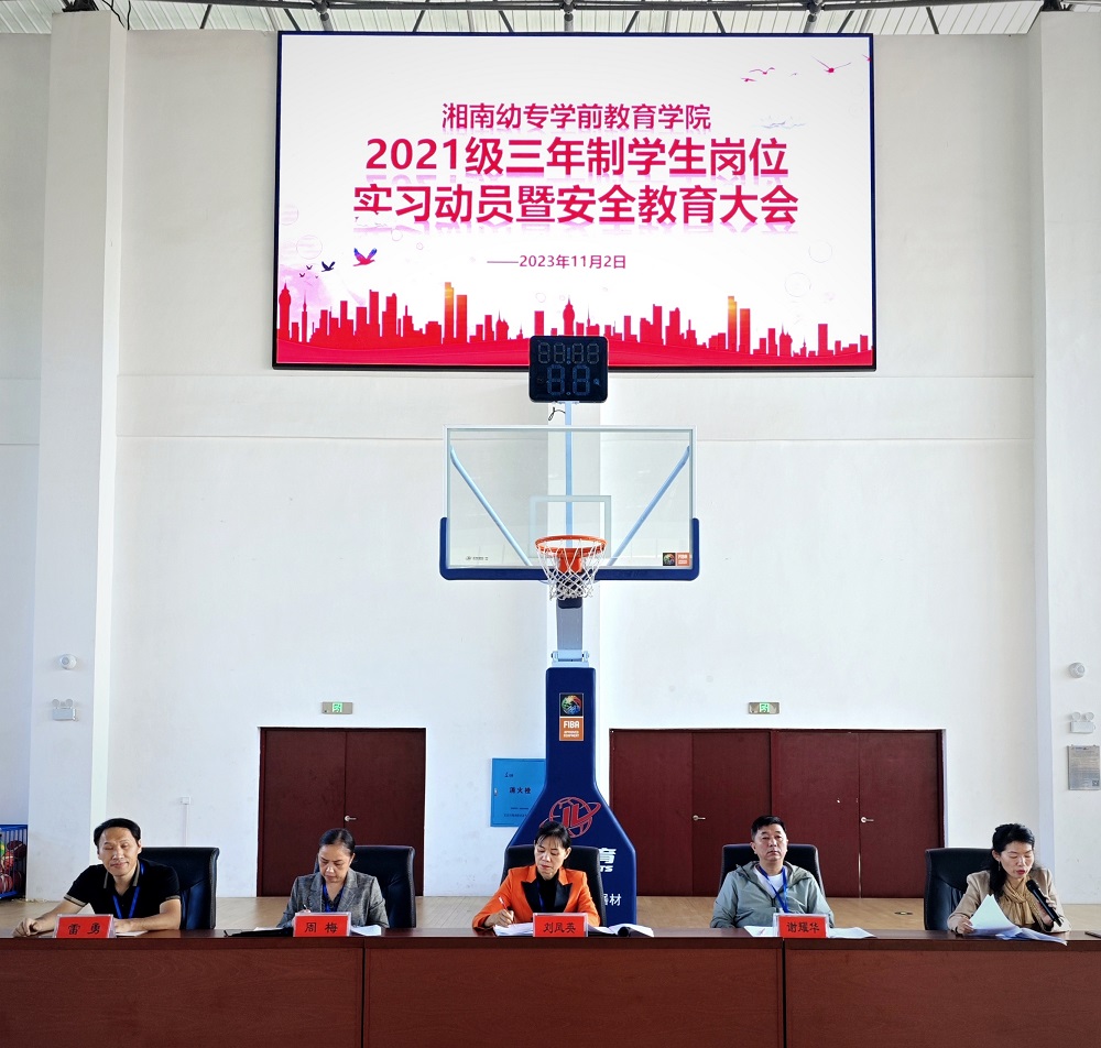 11月2日上午9点,学前教育学院在体育馆召开2021级三年制学生岗位实习动员暨安全教育大会。学前教育学院院长刘凤英、党总支书记谢耀华等院领导班子成员、毕业班辅导员和2024届全体学生参加会议。会议由学院党总支副书记周梅主持。