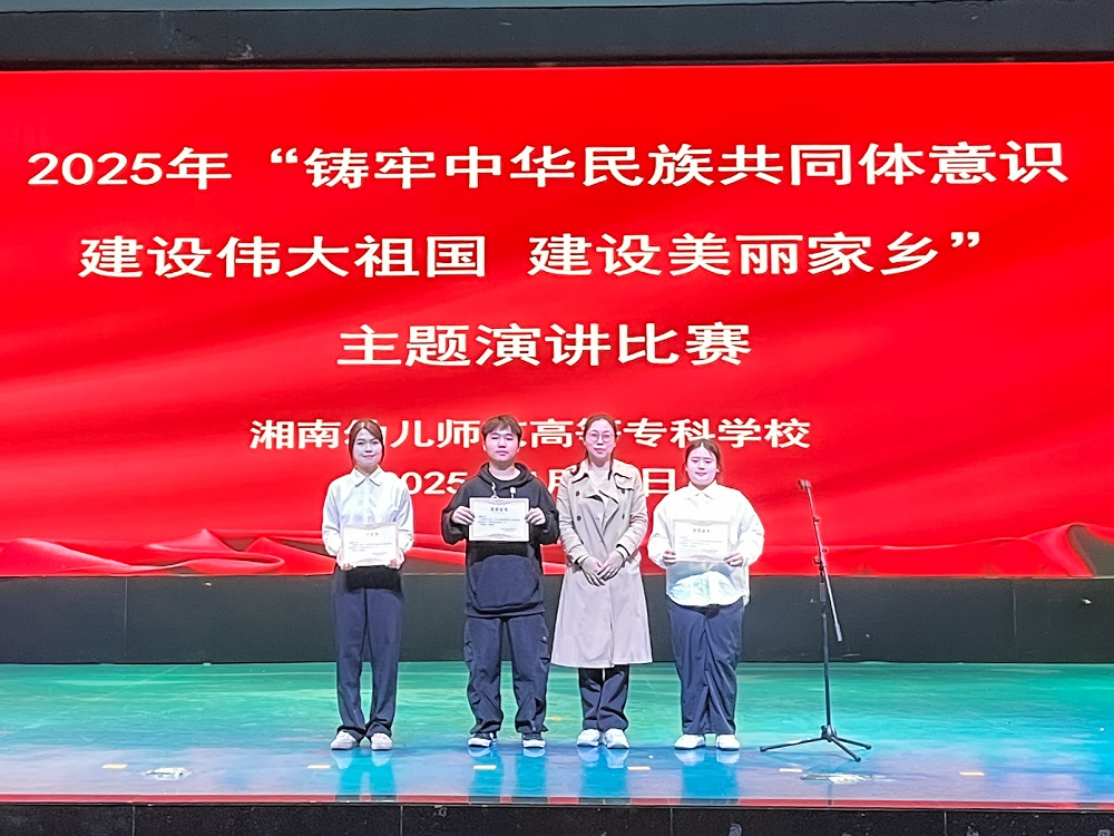 4月27日晚上,湘南幼专2025年“铸牢中华民族共同体意识 建设伟大祖国 建设美丽家乡”主题演讲比赛决赛在演艺厅隆重举行。