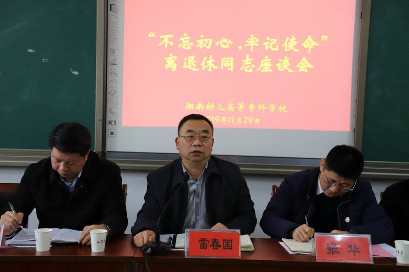 党委书记雷春国作了总结讲话。雷书记指出,学校开展“不忘初心、牢记使命”主题教育以来,重点开展了八个方面的活动,即自学“一章两书”原文原著、举办读书研讨班、开展五项教育(革命传统教育、形式政策教育、警示教育、专题警示教育,爱国主义教育)、举行专题辅导报告会、党委书记上专题党课、推进专题调研(撰写高质量的调研报告)、深入检视问题、召开民主生活会等活动,学校主题教育取得了明显的阶段性成效。雷书记希望老同志们当好学校主题教育的参与者和监督者,并继续发挥优势和余热,一如既往地关注和支持学校的改革和发展。 雷书记要求,学校相关部门的同志,要提高政治站位,饱含工作热情,切实担起责任,真抓实干,做好离退休教职工的服务和管理工作,真正让老同志在政治上有荣誉感,在组织上有归属感,在生存上有安全感,在生活上有幸福感。